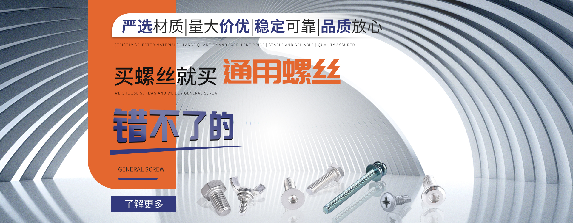 中山市通用螺絲制造有限公司成立于1987年,工廠坐落于廣東四小虎之一的中山市,北連廣州,毗鄰港澳。總占地面積14000m 2,足有兩個(gè)足球場。我司于1998年通過德國萊茵TUV ISO9002認(rèn)證,于2002年通過TUV ISO9001:2000認(rèn)證。2008年通過ISO 14000認(rèn)證。我司主營自攻螺絲、組合螺絲、機(jī)械螺絲、防松螺絲等標(biāo)準(zhǔn)和非標(biāo)準(zhǔn)件,我司既可按客戶的要求提交所需的產(chǎn)品,也可以為客戶量身定做所需產(chǎn)品。我司擁有專業(yè)的產(chǎn)品檢測隊(duì)伍和投影分析儀、金相、硬度計(jì)(韋氏和洛氏)、扭矩力測試計(jì)等完善的檢測設(shè)備,為電子、電器、五金塑料、衛(wèi)浴、家具、機(jī)械、汽配等行業(yè)提供符合歐盟質(zhì)量、環(huán)保要求的產(chǎn)品。2006年,我司自主開發(fā)的ERP管理系統(tǒng),使我們的生產(chǎn)和服務(wù)效率得到了極大的提高。 經(jīng)過三十多年地摸爬滾打,依靠眾多新老顧客的支持,通用螺絲逐漸成長為國內(nèi)知名的緊固件供應(yīng)商。了解更多 >>